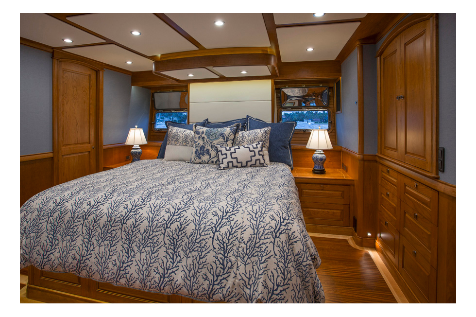 King size island berth with drawers and storage below
